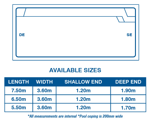 The Hampton series is a highly popular geometric pool design, featuring tight radius corners for a sleek, stylish look. Offering ample width and a generous swimming area, it’s perfect for entertaining family and friends. With space to swim and relax, it’s the ultimate backyard addition.